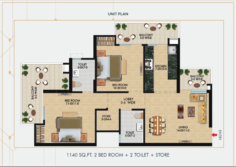 | 2BHK + 2T + STORE | 1140 SQ.FT. | PRICE ON REQUEST |