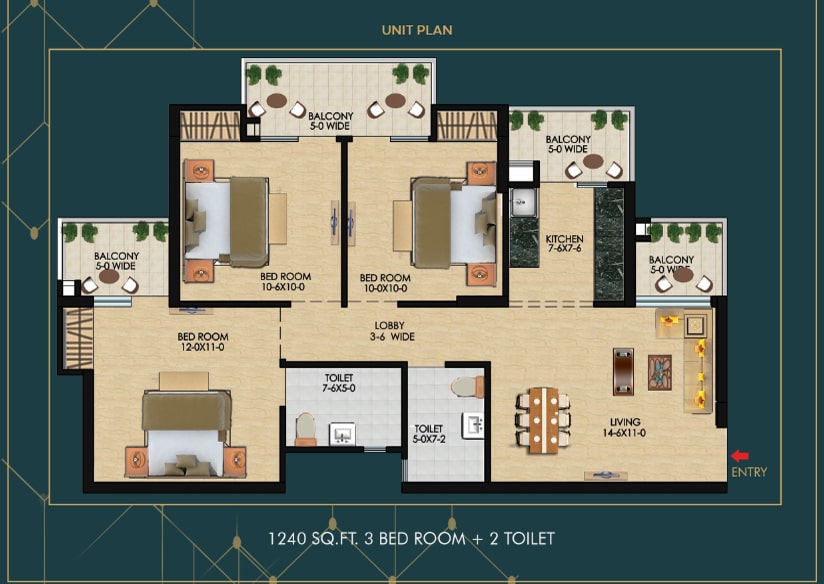 | 3BHK + 2T | 1240 SQ.FT. | PRICE ON REQUEST |