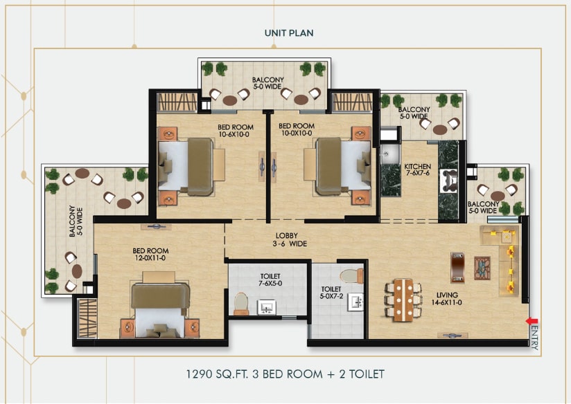 | 3BHK + 2T | 1290 SQ.FT. | PRICE ON REQUEST |