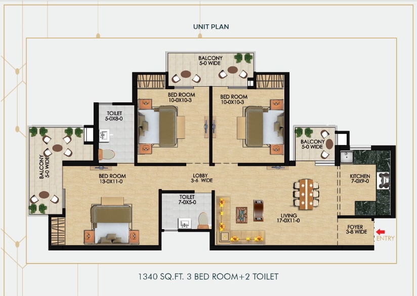 | 3BHK + 2T | 1340 SQ.FT. | PRICE ON REQUEST |