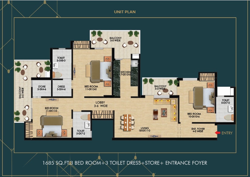 | 3BHK + 2T + STORE | 1685 SQ.FT. | PRICE ON REQUEST |