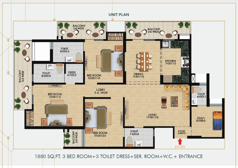 | 3BHK + 4T + SERVANT | 1880 SQ.FT. | PRICE ON REQUEST |