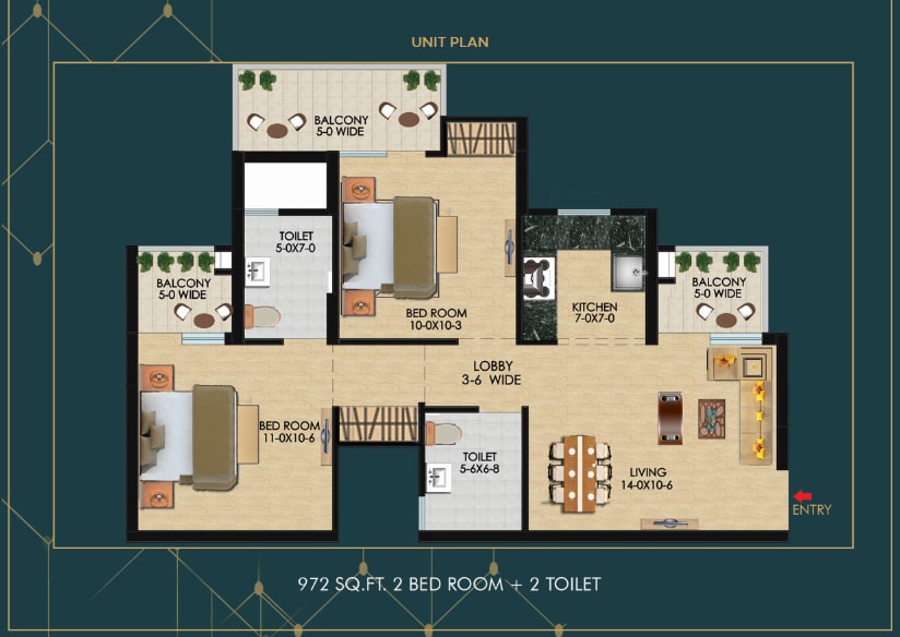 | 2BHK + 2T | 972 SQ.FT. | PRICE ON REQUEST |